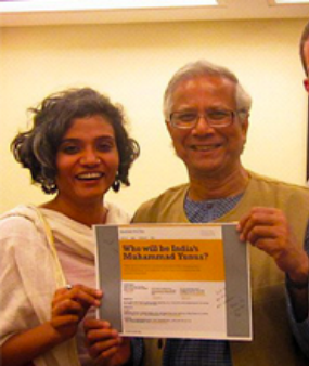– PS Our first UnLtd India website had the strapline ‘Who will be India’s Muhammad Yunus?’ The photo on the left is of Pooja and I saying ‘thank you’ to the man himself in Mumbai earlier this year.